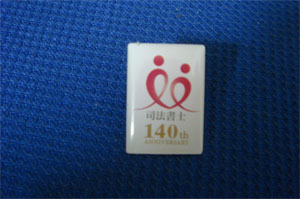 写真↑ 「司法書士制度140周年記念ピンバッチ」を手に入れた。